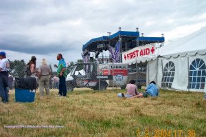 Parking lot Tour shirts we bought..........The very colorful bus : ))
